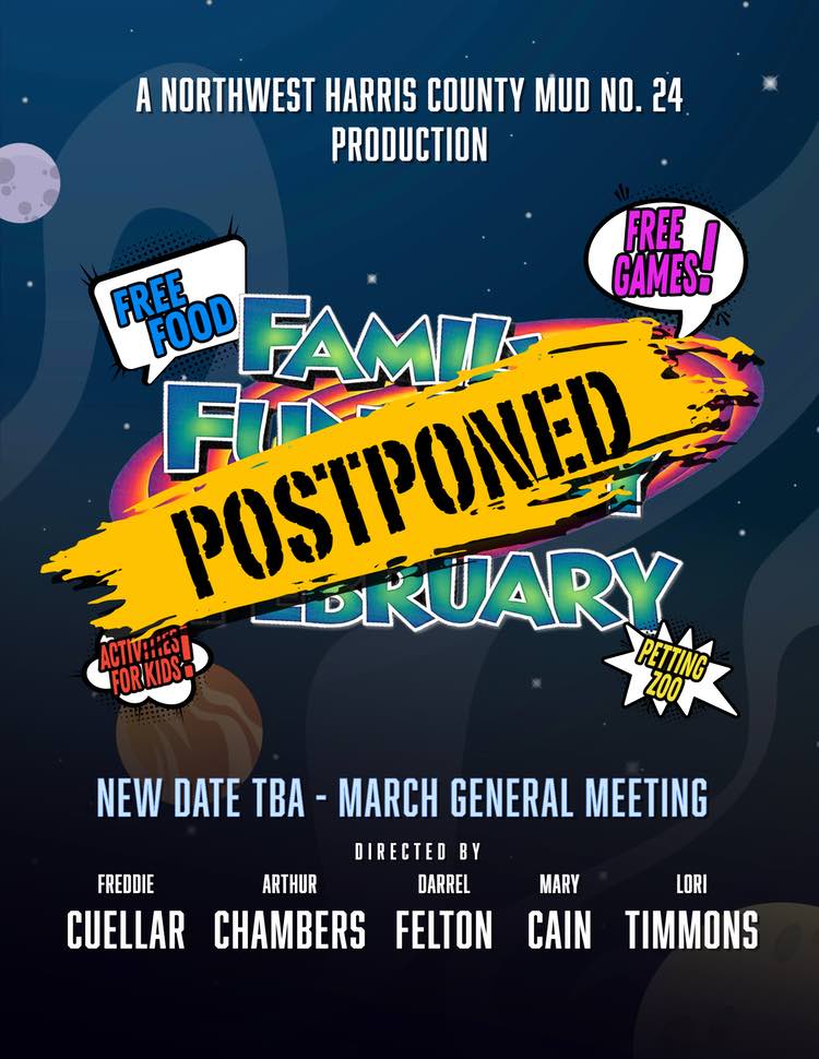 Join us for Family Fun-Day on Friday, February 21st, 2026, from 6-8pm at the MUD 24 Administration Building! This free community event will feature food, games, activities for kids, a petting zoo, and a Mardi Gras celebration with free crawfish.